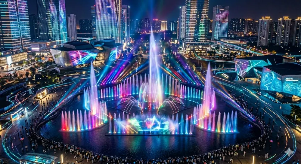 현대의 수경 시설은 단순한 조경 요소를 넘어 스마트 시티의 커넥티드 라이팅 시스템과 결합하여 진화하고 있습니다. DMX512와 같은 통신 프로토콜을 기반으로 한 제어 시스템은 수천 개의 노즐과 조명을 개별적으로 제어하여 음악과 물, 빛이 하나가 되는 멀티미디어 쇼를 가능하게 합니다. 이는 랜드마크 교량 조명이나 대형 상업 공간에서 매출을 견인하는 강력한 마케팅 툴로 활용됩니다. 최근에는 AI 기술이 접목되어 풍속 센서가 강한 바람을 감지하면 물줄기의 높이를 자동으로 낮추고 조명의 조도를 조절하여 보행자의 안전과 에너지 효율을 동시에 챙기는 지능형 설계가 도입되고 있습니다.