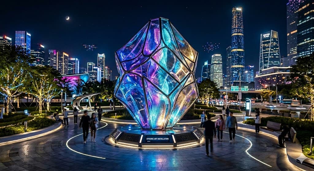 - 유리 및 반투명 소재: 내부에서 밖으로 뿜어져 나오는 '내부 투과 조명' 방식을 사용하면 조형물 자체가 스스로 빛을 내는 듯한 신비로운 분위기를 연출할 수 있습니다.
